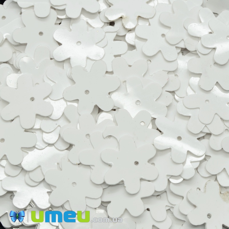 Паєтки Індія квіти плоскі, 15 мм, Білі (PAI-037853) / 1 уп (5 г)