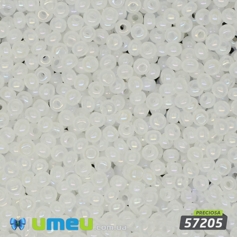Бісер чеський №540 / 57205, Білий напівпрозорий райдужний, Перламутровий, 10/0 (BIS-003868) / 1 уп (5 г)