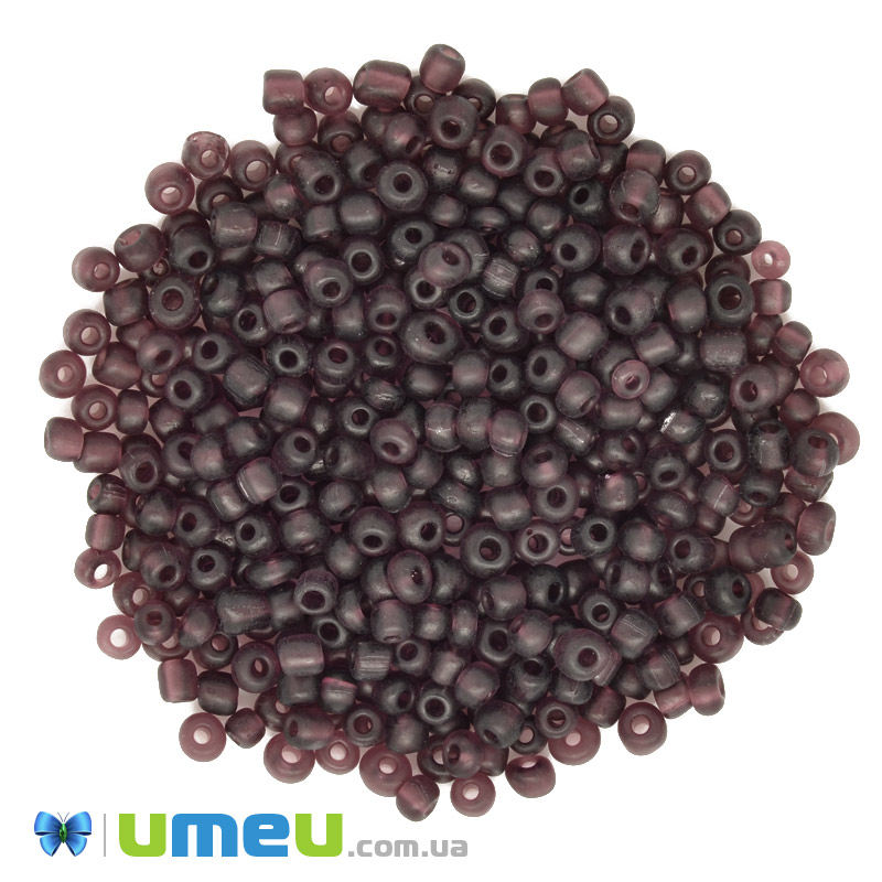 Бісер китайський великий, 6/0, Фиолетово-коричневий прозорий матовий, 4 мм (BIS-039269) / 1 уп (25 г)