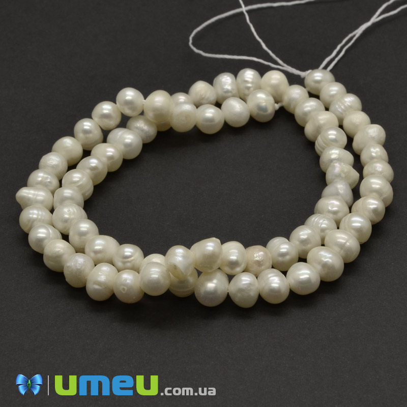 Намистина натуральний камінь Перли річкові молочні, 5-7 мм (BUS-039399) / 1 низка