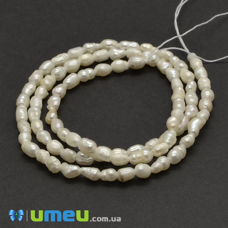 Намистина натуральний камінь Перли річкові молочні Рис, 3-5x2-3 мм (BUS-039400) / 1 низка
