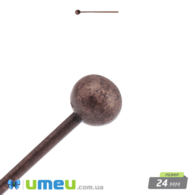 Гвоздики з кулькою, Мідь, 2,4 см, 0,5 мм (PIN-040323) / 1 уп (50 шт)