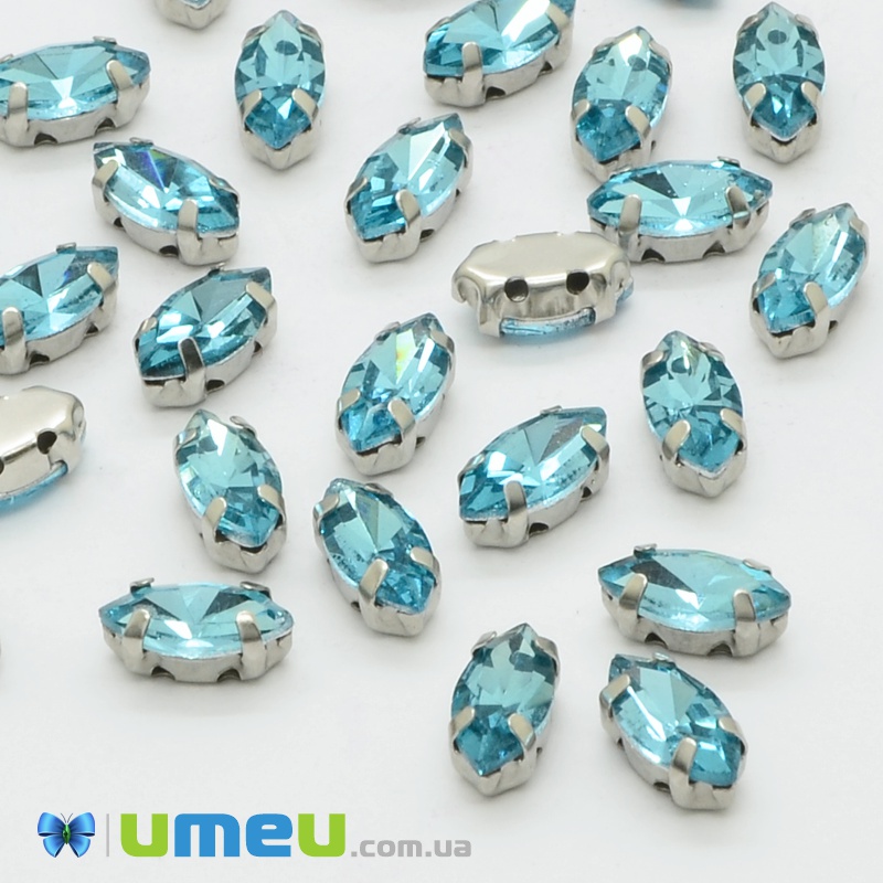 Шатон човник 12х6 мм, Темне срібло, Блакитний (KAB-040690) / 1 шт