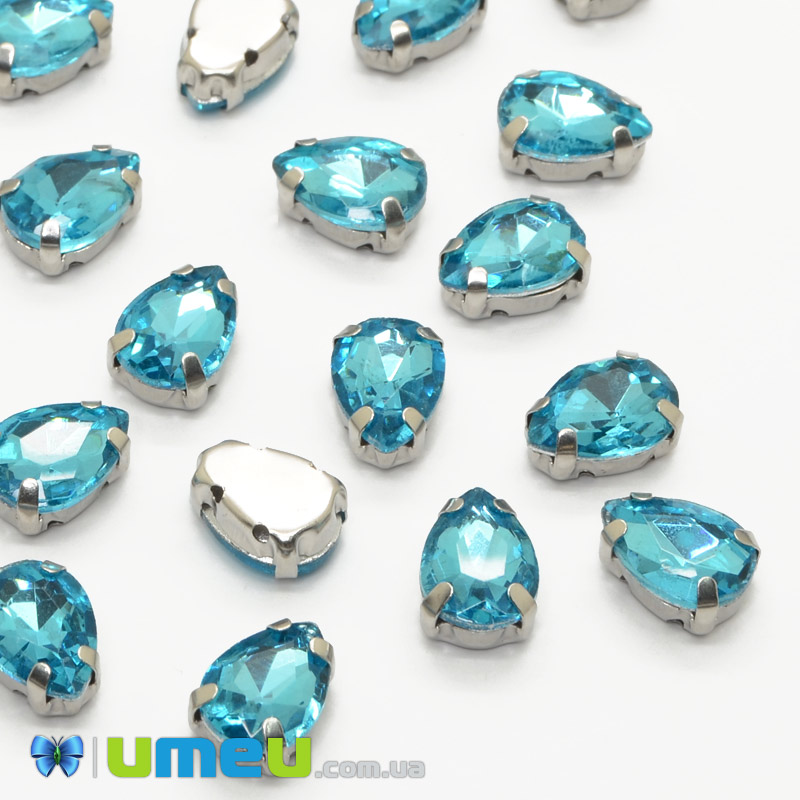 Шатон крапля 8х6 мм, Темне срібло, Блакитний (KAB-040731) / 1 шт