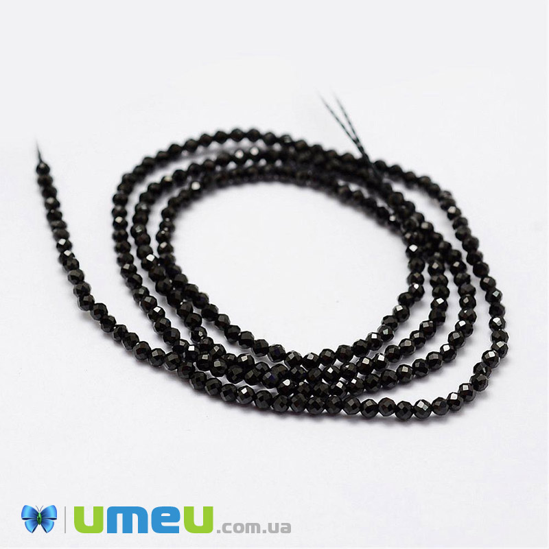 Намистини Шпінель чорна, Натур. камінь, 3х2,5 мм, Круглі грановані (BUS-040886) / 1 низка