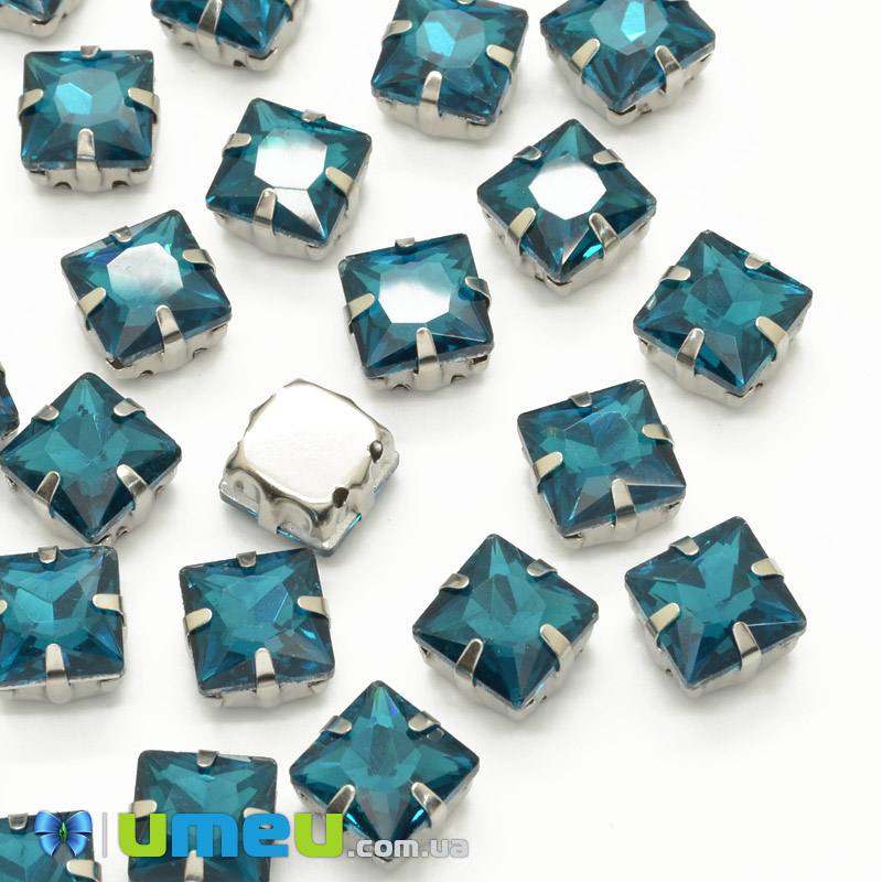Шатон квадратний 8х8 мм, Темне срібло, Бірюзовий (KAB-040992) /