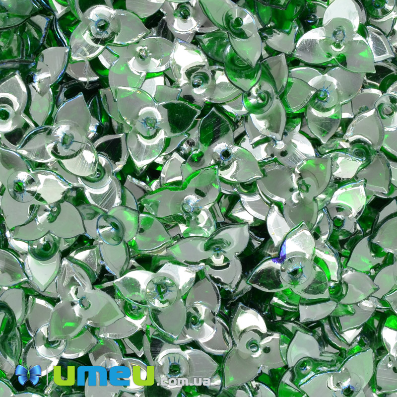 Паєтки Індія квіти, 10 мм, Зелені (PAI-041047) / 1 уп (5 г)
