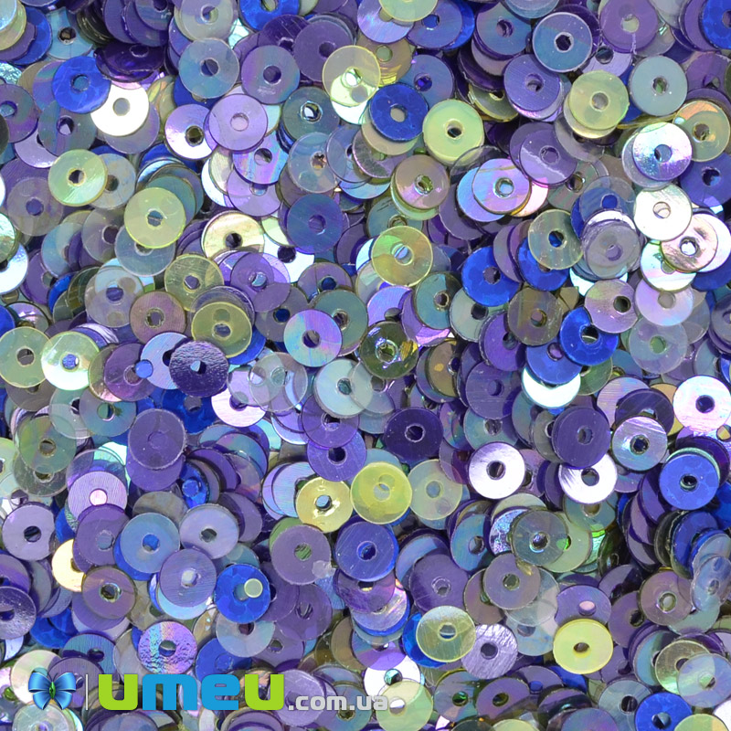 Паєтки Індія круглі плоскі, 4 мм, Мікс синій АВ (PAI-041432) /