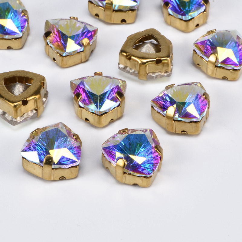 Шатон триліант 12,5х12 мм, Золото, Синьо-рожевий (KAB-041863) / 1 шт