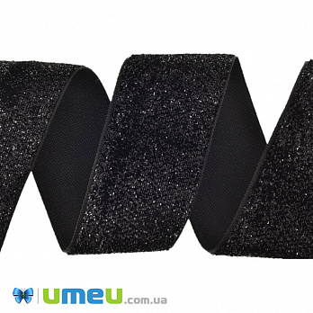 Стрічка оксамитова з люрексом, 38 мм, Чорна (LEN-042200) / 1 м