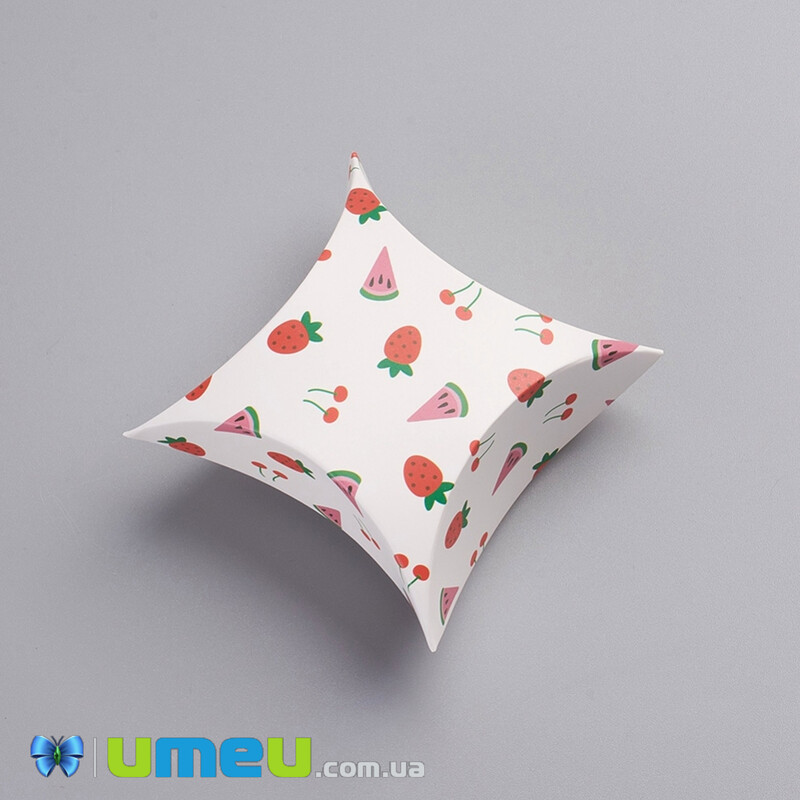 Збірна картонна коробочка, 8,3х8,3х3,5 см, Біла, Фрукти (UPK-042984) /