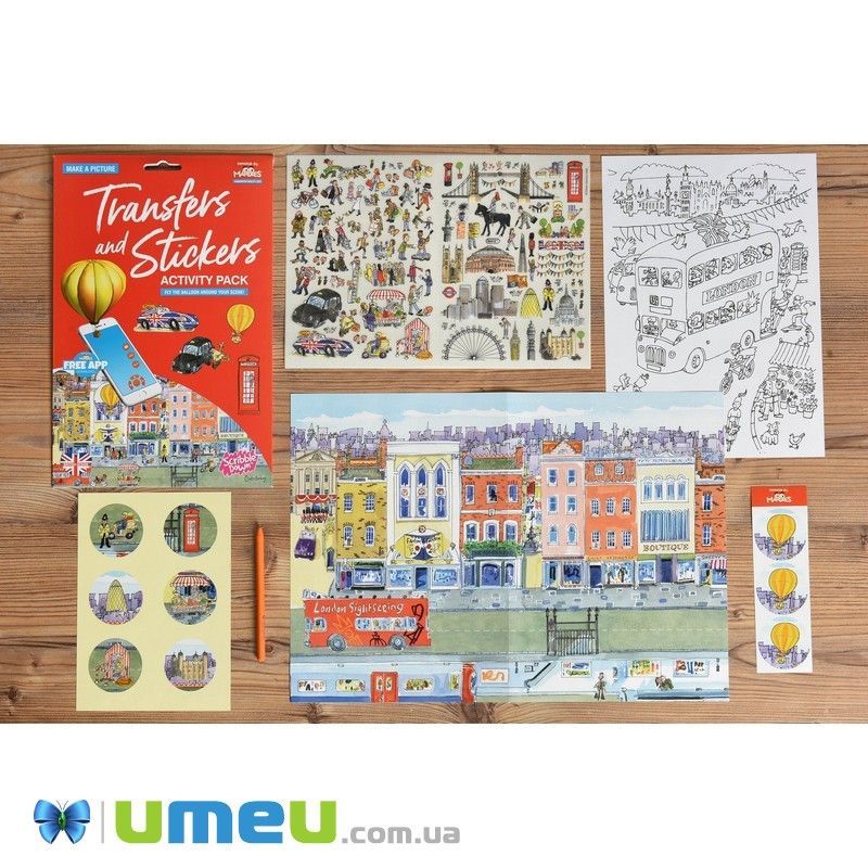 Перевідні наклейки Scribble Down "Лондон" з онлайн додатком - універсальний набір для творчості. Застосування різноманітне - перетворення різних предметів за допомогою обраних наклейок з набору, доповнення / створення власної історії, сюжету або гри. За допомогою безкоштовного додатку Mardles можна "оживити" наклейку повітряної кулі!