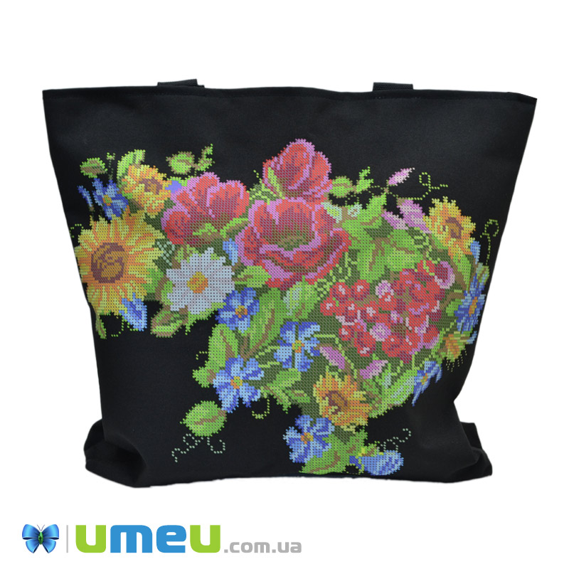 Сумка з принтом під вишивку, Квіти, Чорна (SXM-044489) / 1 шт
