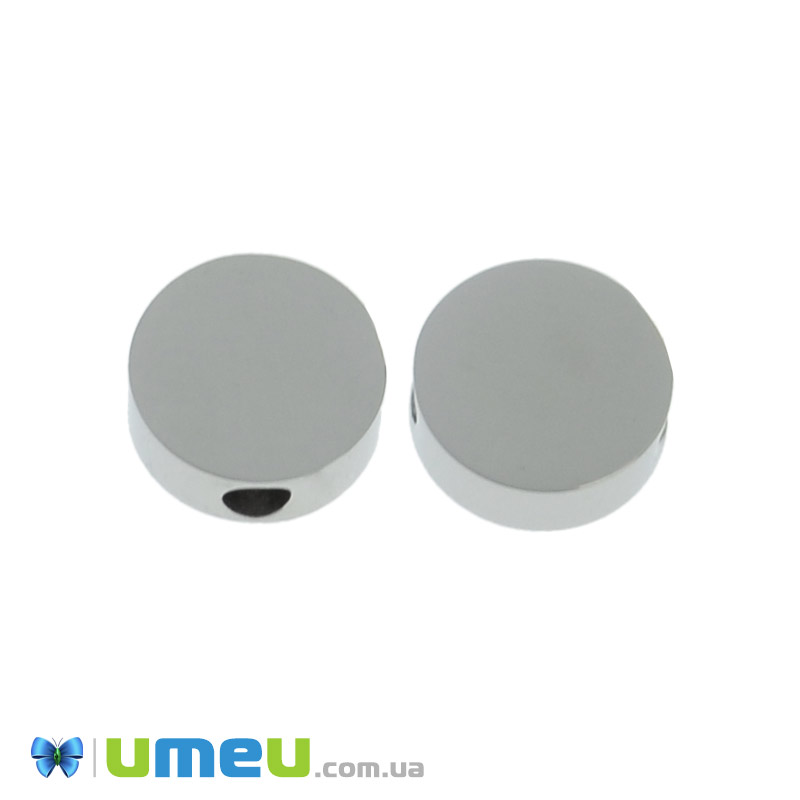 Намистина з нержавіючої сталі Кругла плоска, 8х3 мм, Темне срібло (STL-044571) / 1 шт