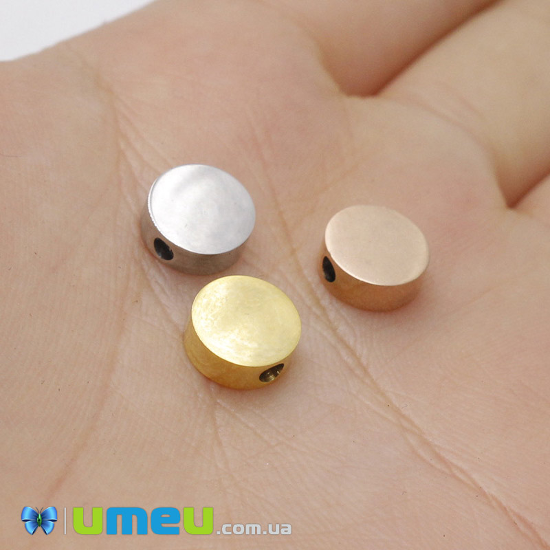 Намистина з нержавіючої сталі Кругла плоска, 8х3 мм, Рожеве золото (STL-044573) / 1 шт