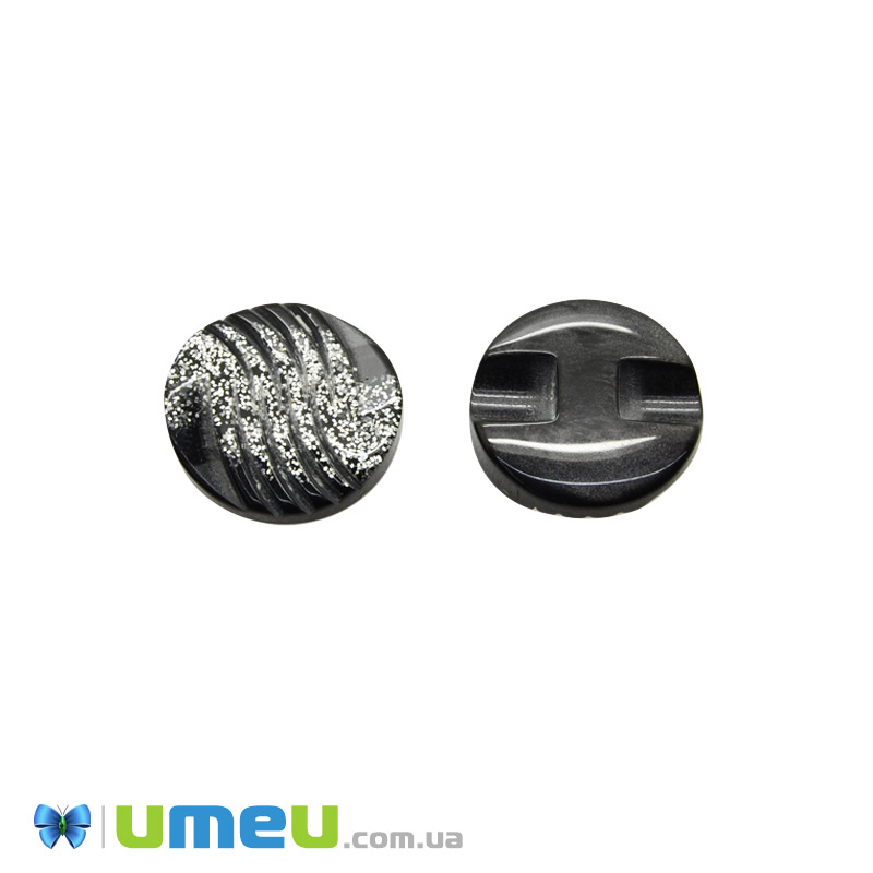 Гудзик пластиковий на півніжці Круглий, 15 мм, Сріблясто-чорний (PUG-046484) / 1 шт