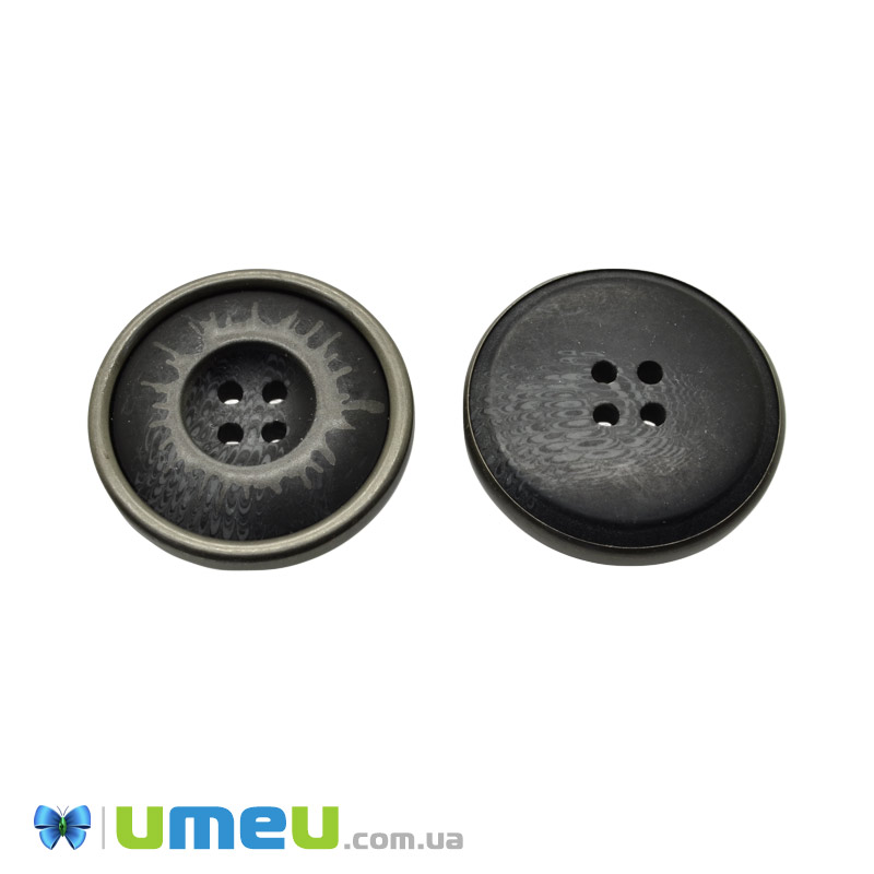 Гудзик пластиковий Круглий, 30 мм, Чорно-сіра (PUG-046537) / 1 шт