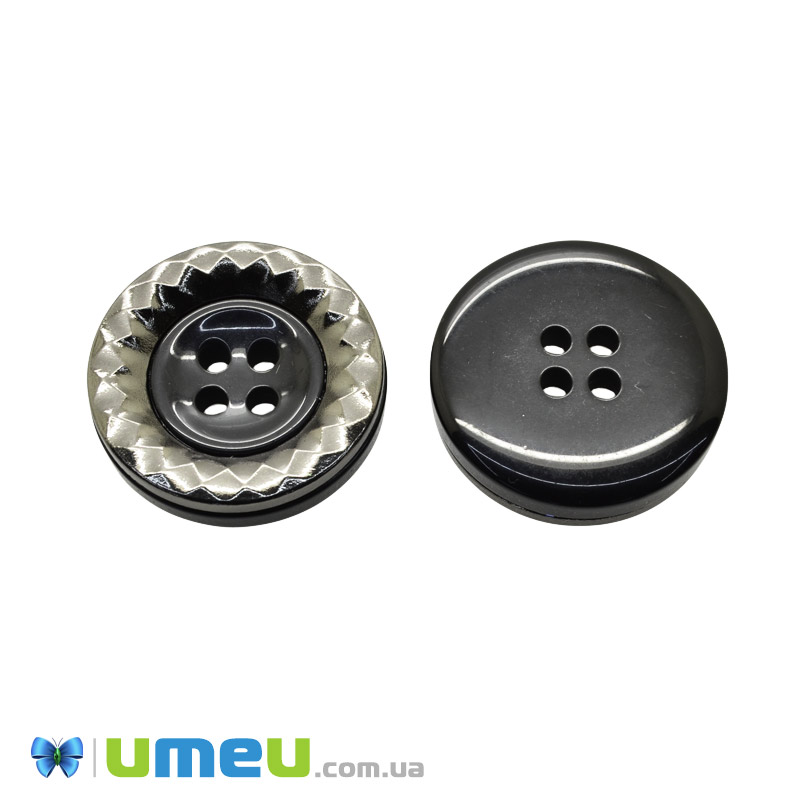 Гудзик пластиковий Круглий, 30 мм, Чорно-сіра (PUG-046539) / 1 шт