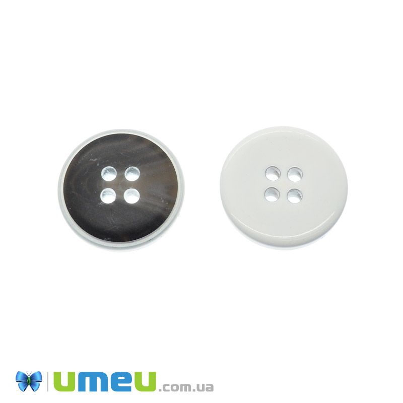 Гудзик пластиковий Круглий, 20 мм, Чорно-білий (PUG-046607) / 1 шт