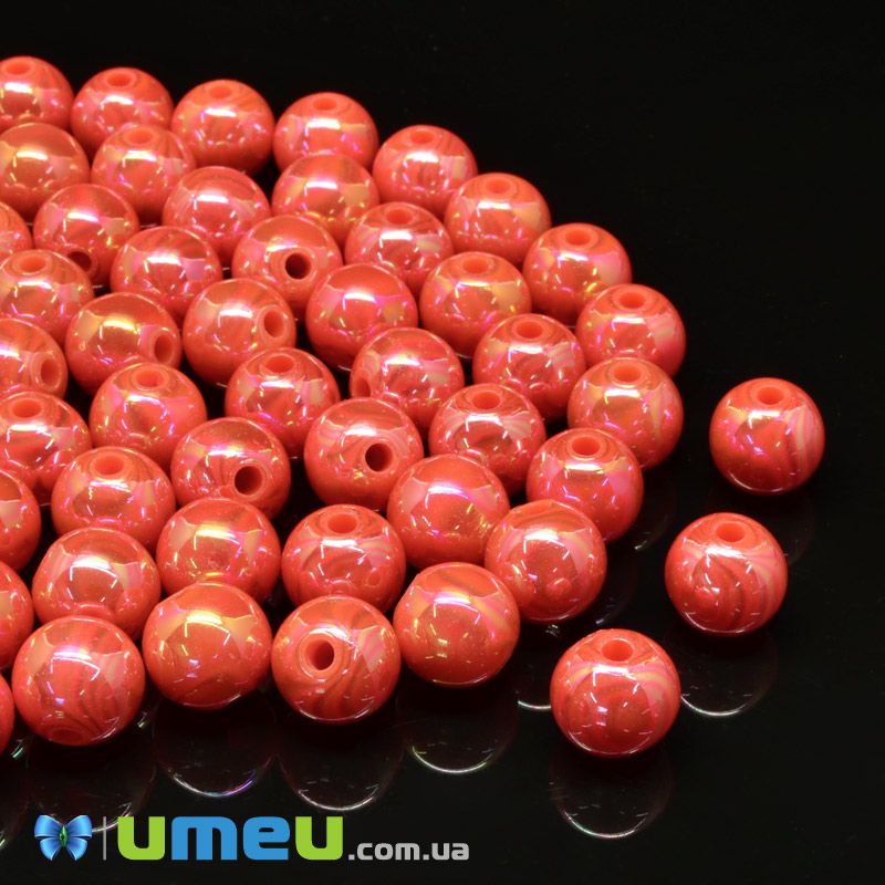 Намистина пластикова райдужна Кругла, 8 мм, Коралова (BUS-047149) /