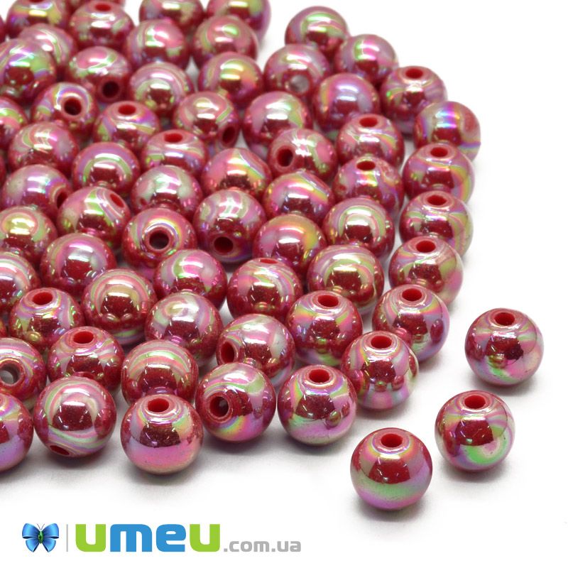 Намистини пластикові райдужні, Круглі, 8 мм, Вишневі (BUS-047157) /
