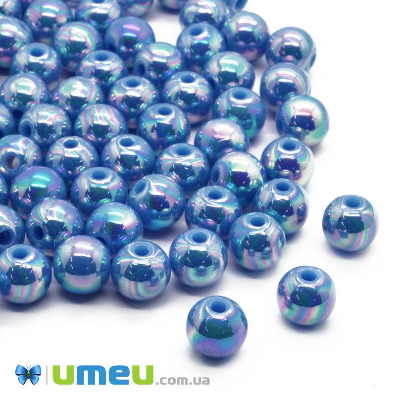 Намистини пластикові райдужні, Круглі, 8 мм, Сині (BUS-047167) /