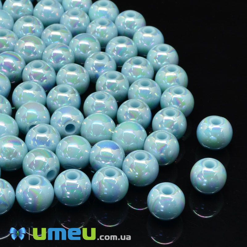 Намистини пластикові райдужні, Круглі, 8 мм, Блакитні (BUS-047168) /