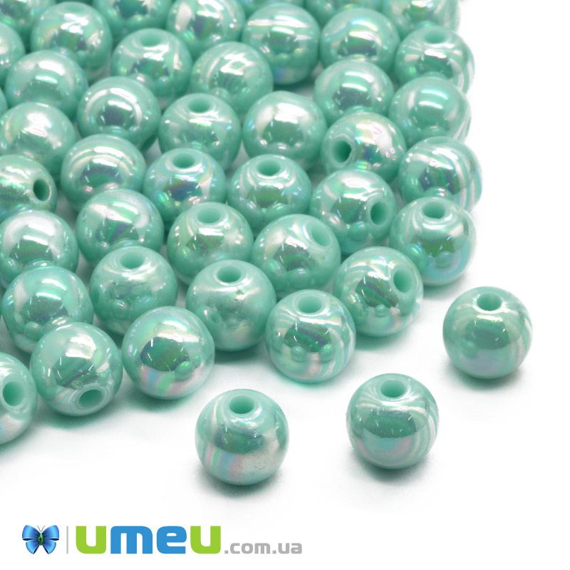 Намистини пластикові райдужні, Круглі, 8 мм, Бірюзові (BUS-047174) /