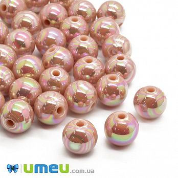 Намистини пластикові райдужні Круглі, 12 мм, Пудрові (BUS-047204) / 1 уп (10 шт)