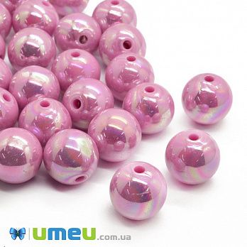 Намистини пластикові райдужні Круглі, 12 мм, Рожеві (BUS-047225) / 1 уп (10 шт)