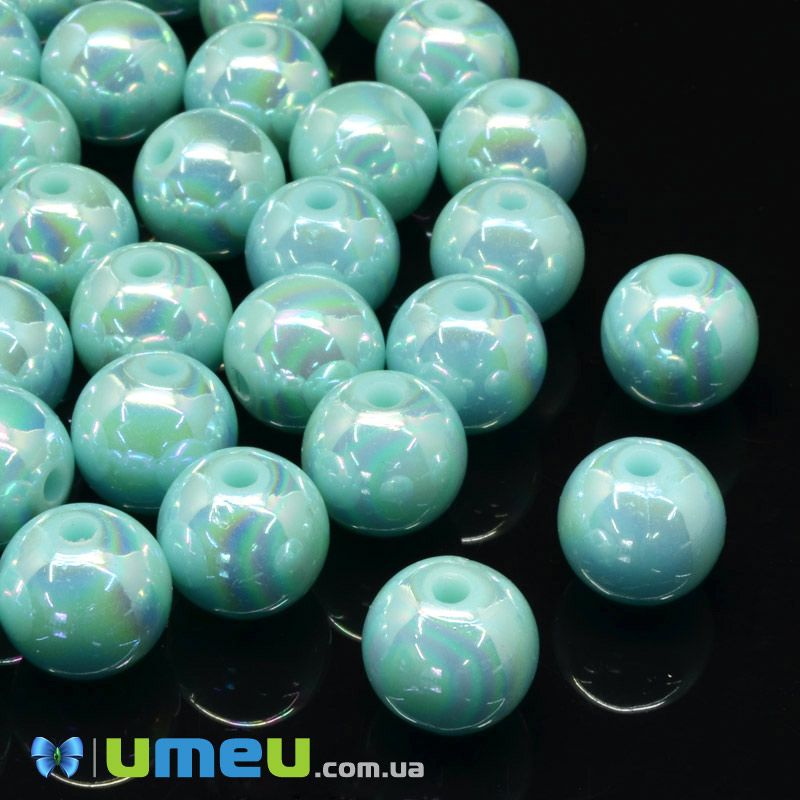 Намистини пластикові райдужні Круглі, 12 мм, Бірюзові (BUS-047226) / 1 уп (10 шт)