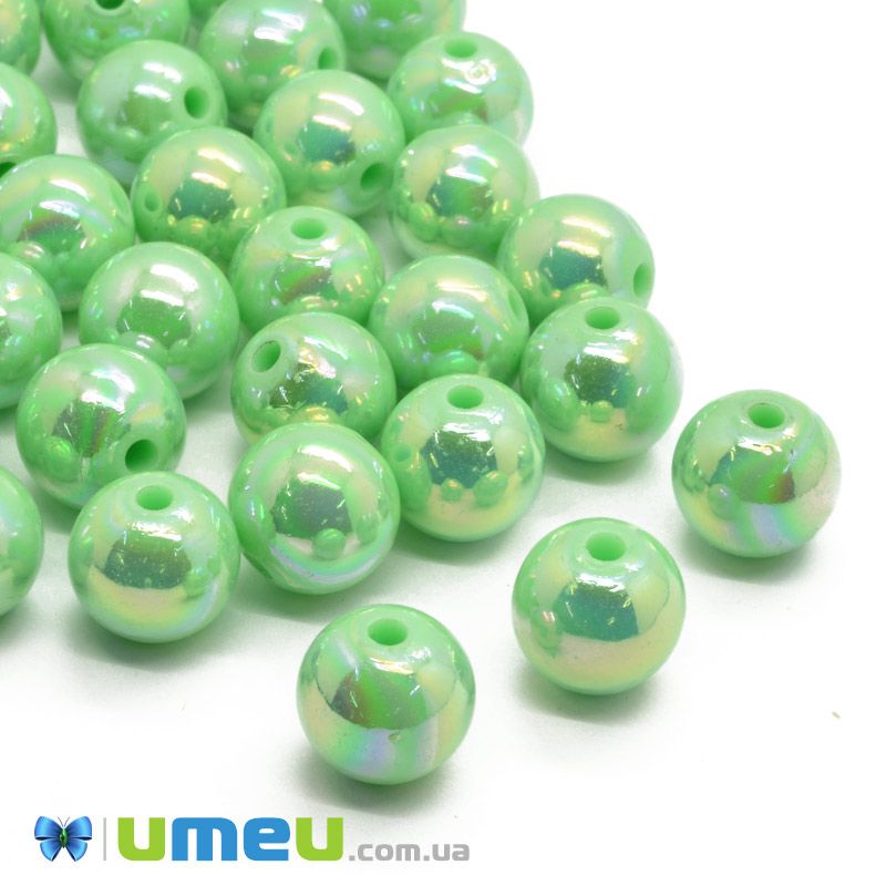 Намистини пластикові райдужні Круглі, 12 мм, Салатові (BUS-047227) / 1 уп (10 шт)