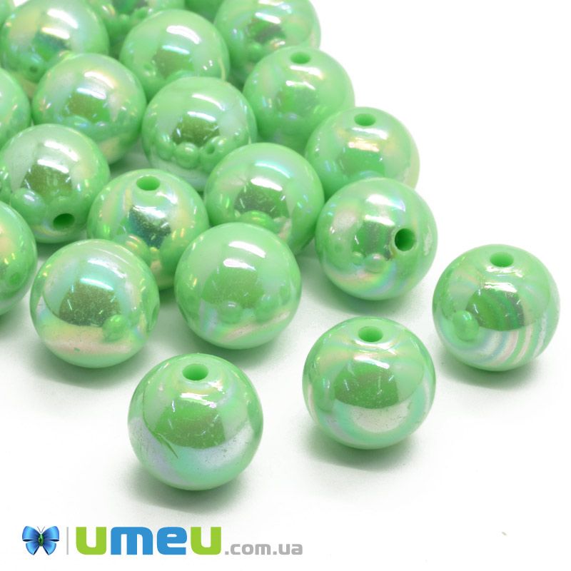 Намистина пластикова райдужна Кругла, 16 мм, М'ятна (BUS-047232) / 1 шт