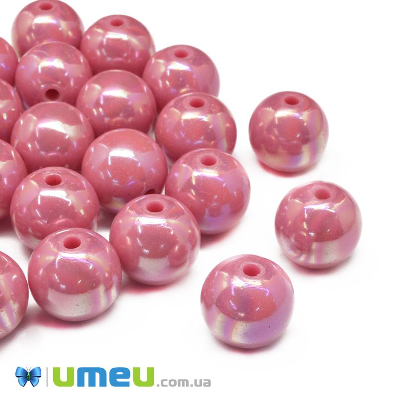 Намистина пластикова райдужна Кругла, 16 мм, Рожева (BUS-047237) / 1 шт