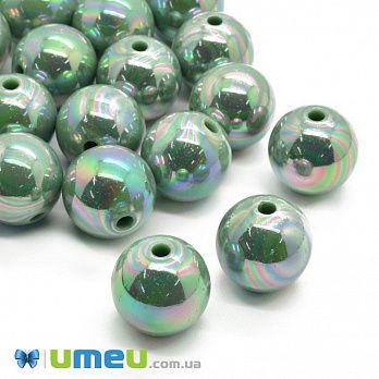 Намистини пластикові райдужні Круглі, 16 мм, Зелені (BUS-047239) / 1 уп (10 шт)
