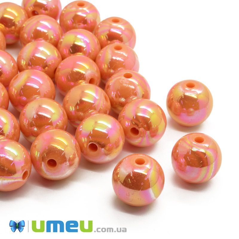 Намистина пластикова райдужна Кругла, 16 мм, Помаранчева (BUS-047247) / 1 шт