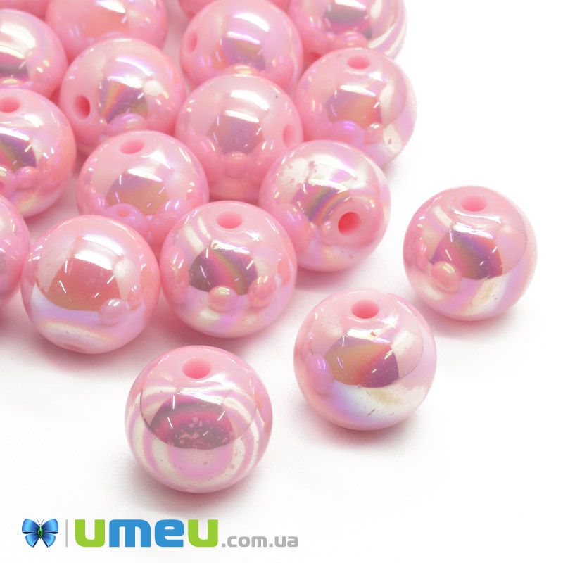 Намистини пластикові райдужні Круглі, 16 мм, Рожеві (BUS-047256) / 1 уп (10 шт)