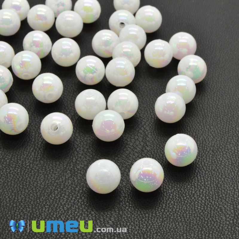 Намисто пластикова райдужна Кругла, 8 мм, Біла (BUS-047450) /