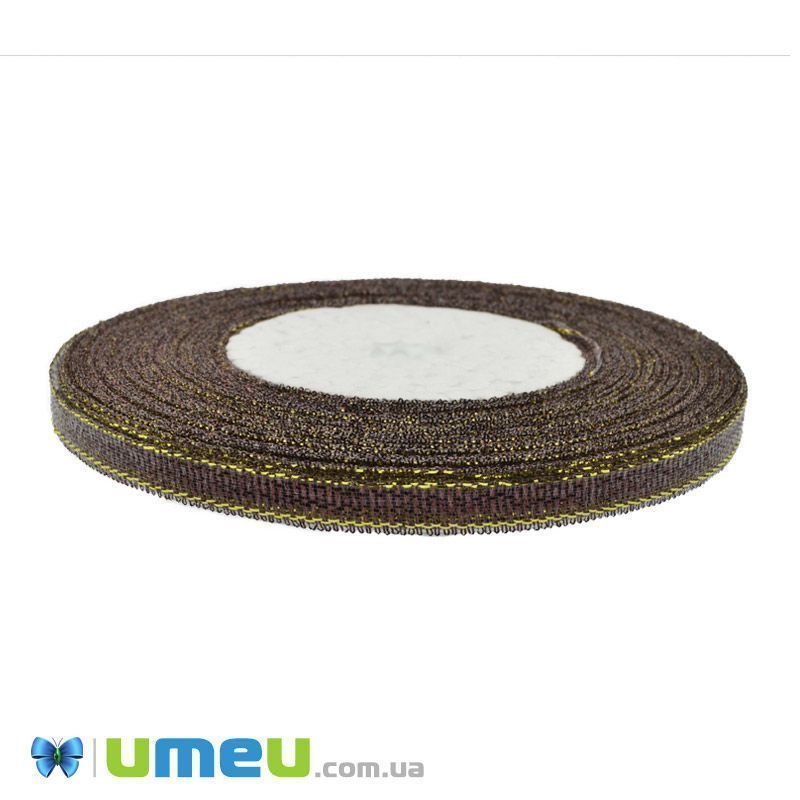 Стрічка парча, 6 мм, Коричнева із золотом (LEN-047617) /
