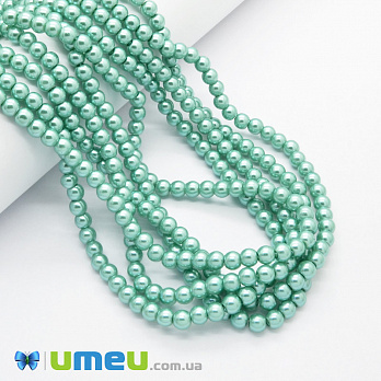 Намистини скляні Перли, 6 мм, Бірюзові, Круглі (BUS-048919) / 1 низка