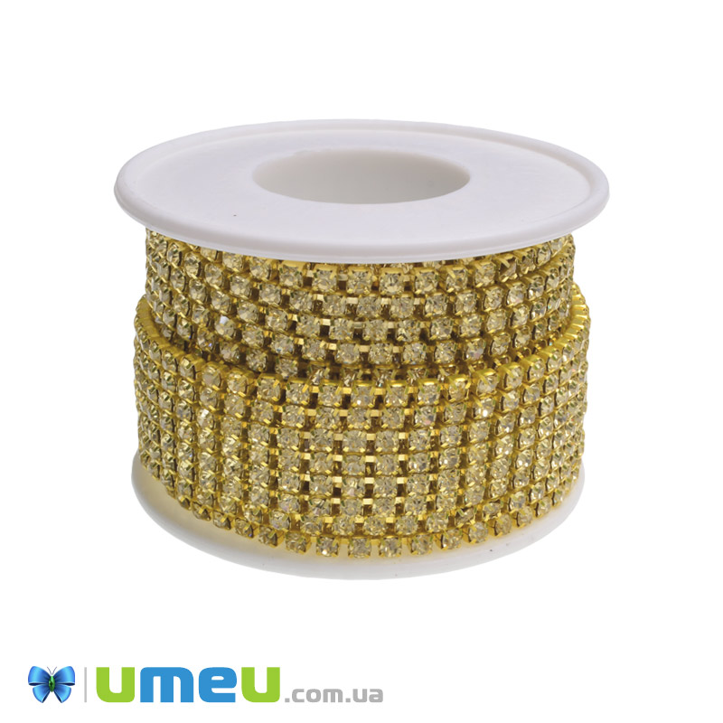 Стразовий ланцюг SS12 (2,8 мм), Золото, Стрази скляні золотисті (ZEP-049286) / 1 м