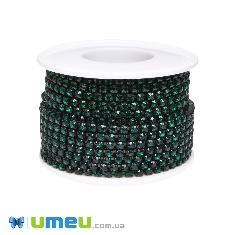 Стразовий ланцюг SS12 (2,8 мм), Смарагдовий, Стрази скляні смарагдові (ZEP-049291) / 1 м