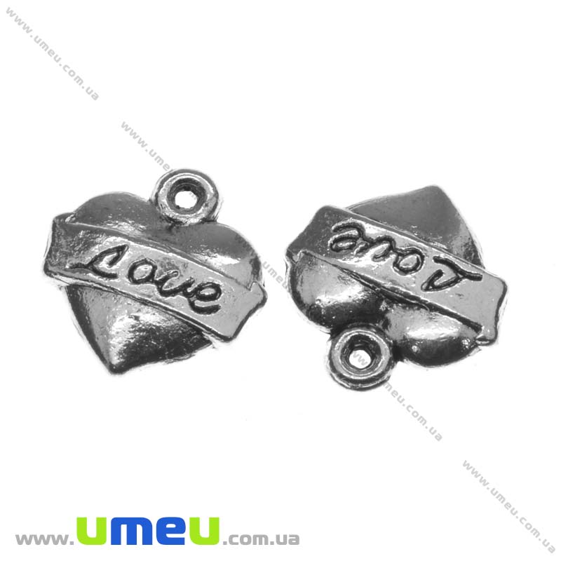 Підвіска метал. Серце (двостор.), 14х14 мм, Античне срібло (POD-004943) / 1 шт