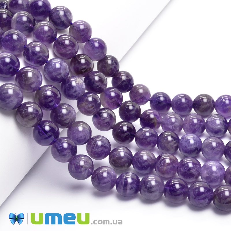 Намистини Аметист, Натур. камінь, 10 мм, Круглі (BUS-049750) / 1 низка