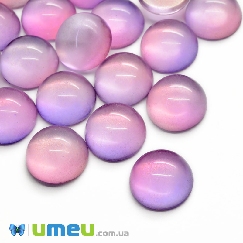 Кабошон скляний, 14 мм, Золотисто-бузковий (KAB-050684) / 1 шт