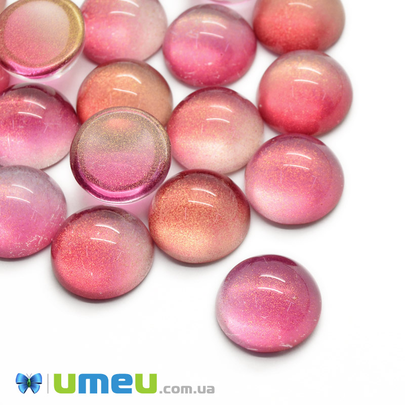Кабошон скляний, 14 мм, Золотисто-червоний (KAB-050685) / 1 шт