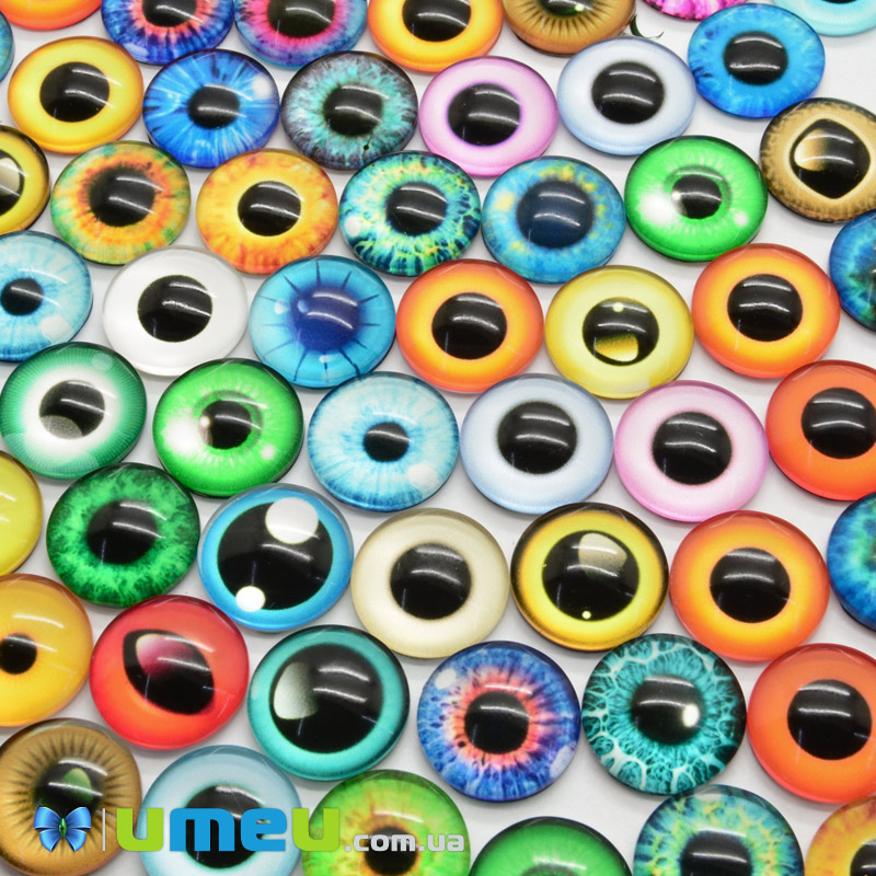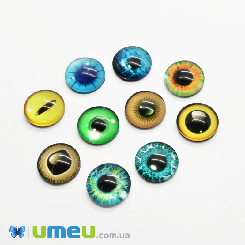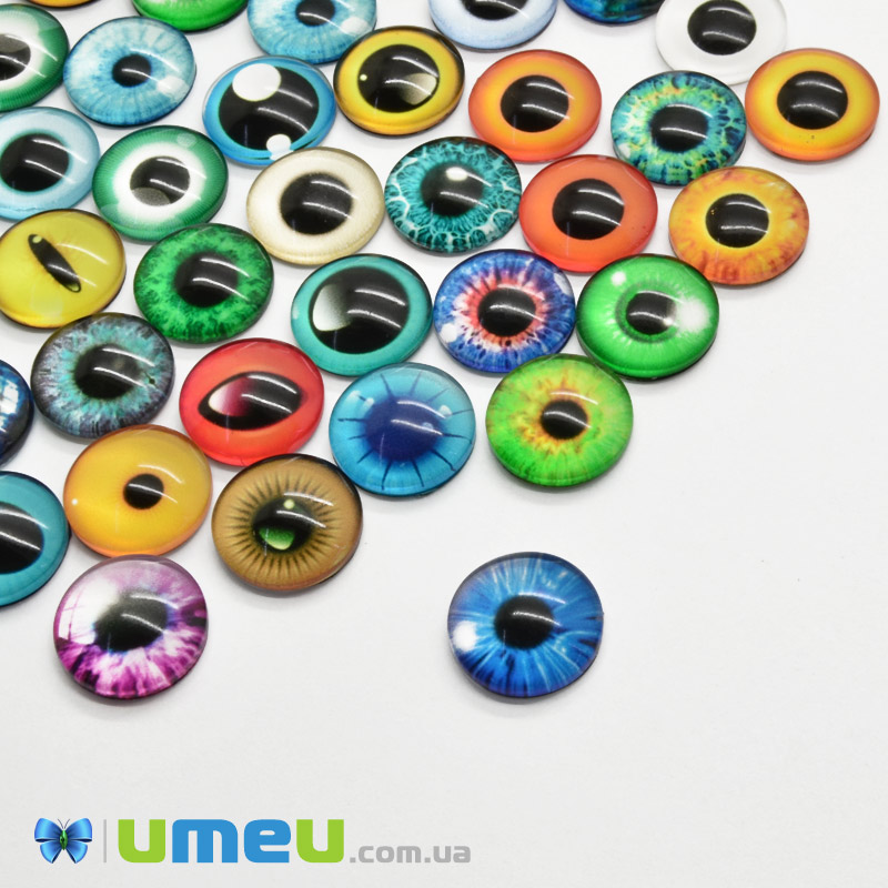 Кабошони скляні з принтом Око, 14 мм, Круглі, Мікс (KAB-050700) / 1 уп (10 шт)