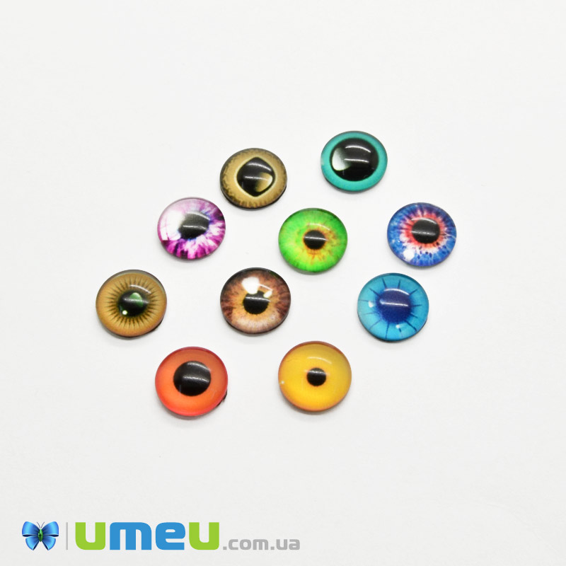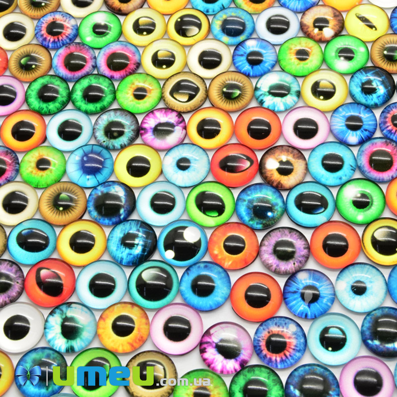 Кабошони скляні з принтом Око, 10 мм, Круглі, Мікс (KAB-050702) / 1 уп (10 шт)
