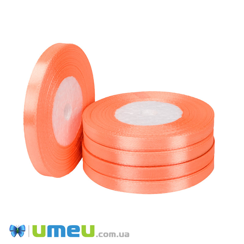 Атласна стрічка, 6 мм, Абрикосова (LEN-050961) / 1 моток (22 м)