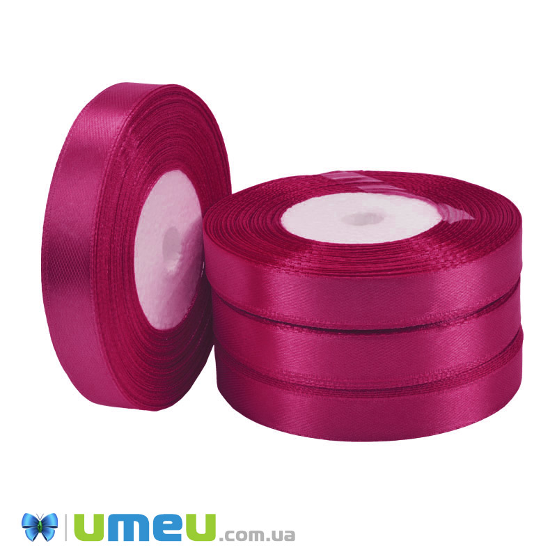 Атласна стрічка, 12 мм, Малинова (LEN-051024) / 1 моток (22 м)